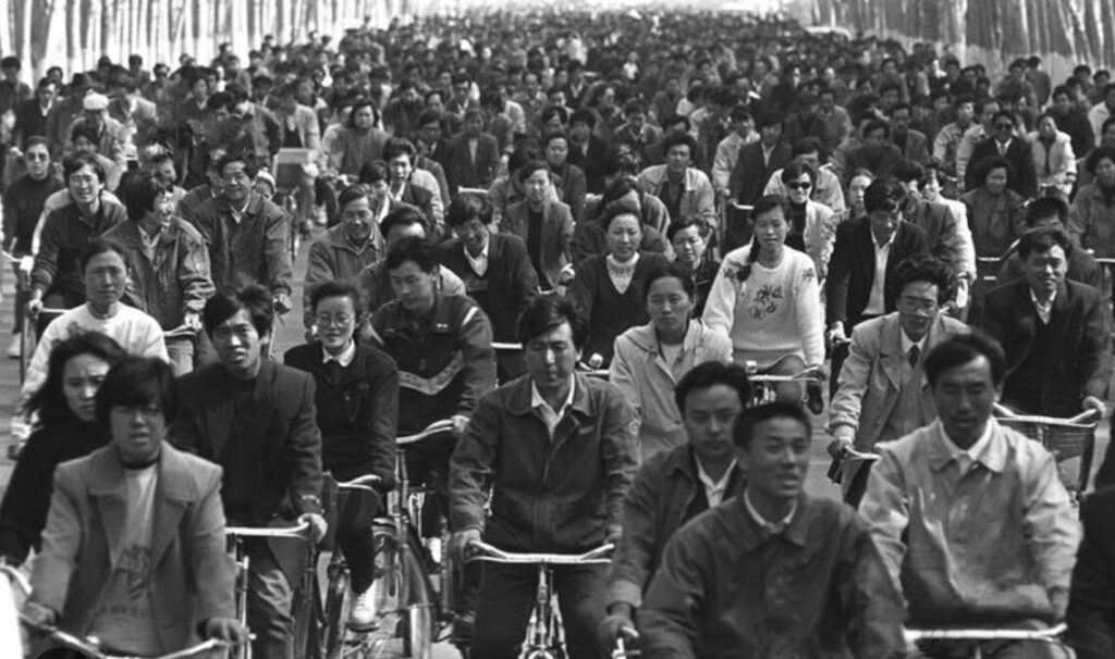 人民服に埋め尽くされた街、自転車の群れ。